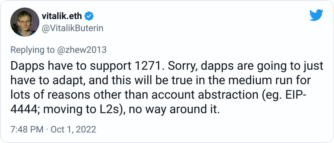Since this is crucial for account abstraction, we want to encourage more dApps to integrate EIP-1271 & EIP-6492.